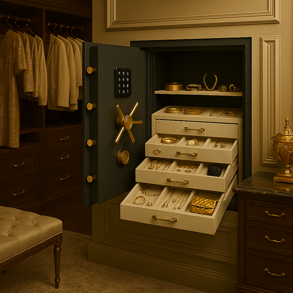 Designed with meticulous attention to detail, these luxury safes feature velvet‑lined interiors, customizable drawers, and advanced locking systems. Perfect for safeguarding fine jewelry, heirlooms, and personal collections in style.