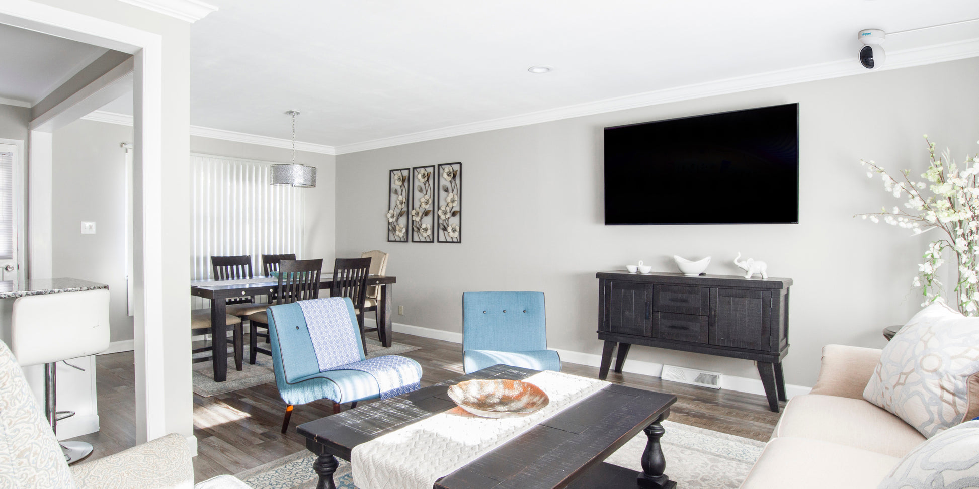 Losing sight is frustrating. Reolink E1 enables a 360° panoramic view with smooth horizontal rotation. With a single camera, you can capture kids toddling around and pets running through the house, or scan the lobby, living room, and dining room.
