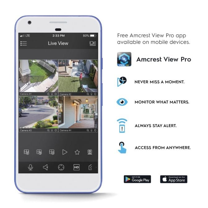 - Playback and record professionally on a PC using the Amcrest Surveillance Pro software or Blue Iris Professional.