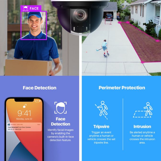 - This camera includes advanced IVS features such as Tripwire, Intrusion, etc. which provide increased perimeter protection and accuracy of the camera