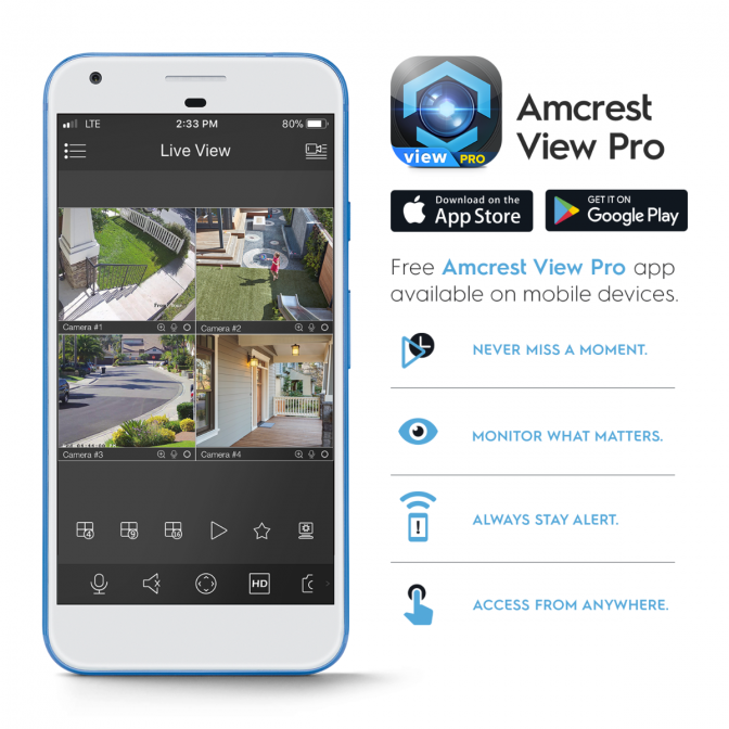 - Playback and record professionally on a PC using Amcrest Surveillance Pro or Blue Iris Professional.
