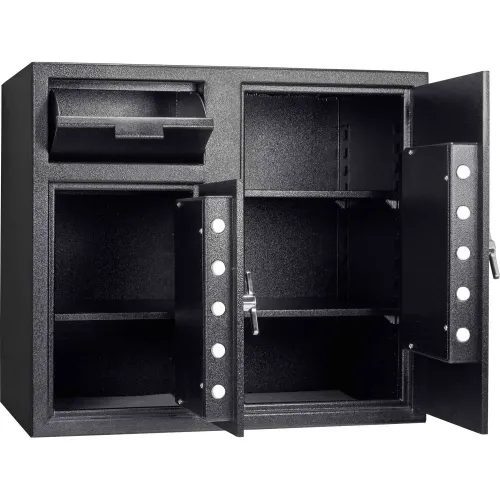 The2.58/4.68 Cu Ft Locker Depository Safe by Barskais a heavy-walled steel deposit box intended for short-term storage of cash and is ideal for restaurants or any cash-business making regular bank deposits. The digital keypad can store up to1 master PIN code and 5 user PIN codes. To resist tampering, this safe has a one-way deposit drawer with anti-fishing baffles that prevents deposited objects from being fished out, as well as a lock-out mode that deactivates the keypad after too many failed entry attempts. A separate large locker next to the drop box is ideal for storing long-term valuables, such as cash, coin, or important documents.