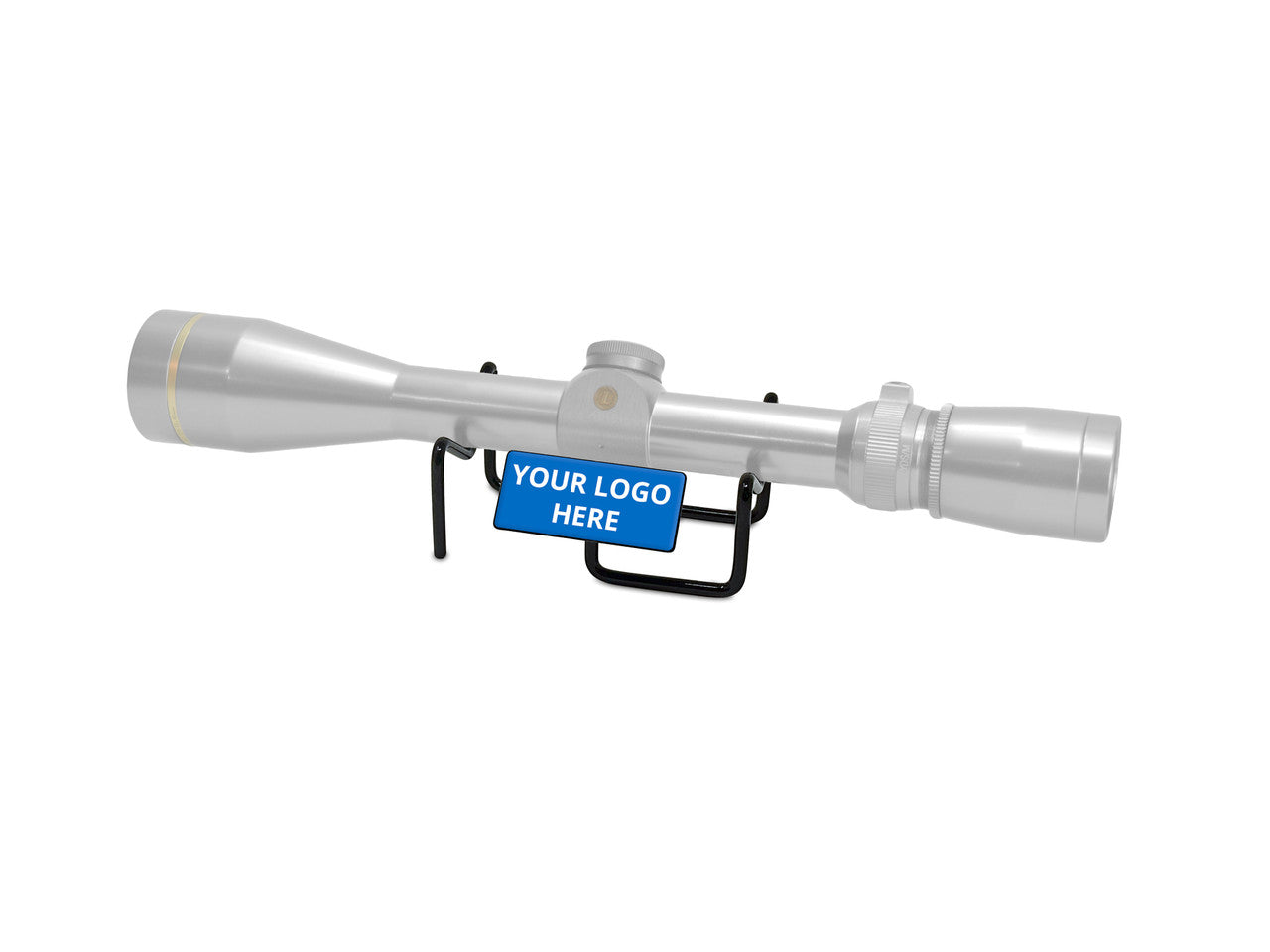 Showcase your accessories with distinctive brand visibility using Custom Branded Tactical Display Stands featuring a 1" x 2.25" rectangular domed decal. These professionally customized stands provide an elongated branding surface ideal for company names and detailed logos while securely displaying scopes, knives, and suppressors. Made in the USA with scratch-resistant protection, this 24-pack delivers a unified professional presentation for retail environments.