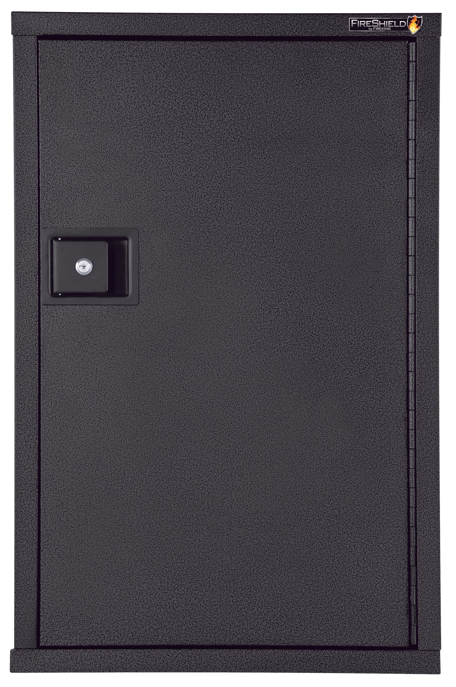 Designed for flexibility, the FireShield cabinet features two adjustable shelves and a keyed lock, allowing customizable storage and controlled access. Available in three textured finishes, it enhances any space while offering the strength and dependability that define the FireKing name.