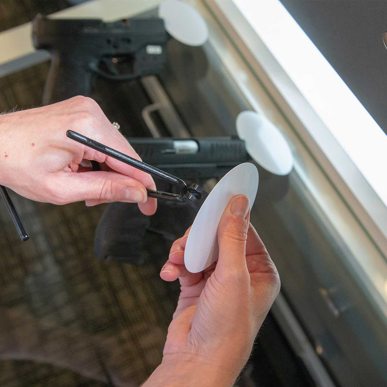Enhance your firearm displays with Gun Display Snaps, the versatile solution for adding pricing, logos, and product information to your showcased items. These plastic clips attach securely to Kikstands, Scope Stands, and Horizontal Gun Cradles, providing a professional mounting surface for tags without obstructing the view of your firearms. Perfect for retail environments and trade shows.
