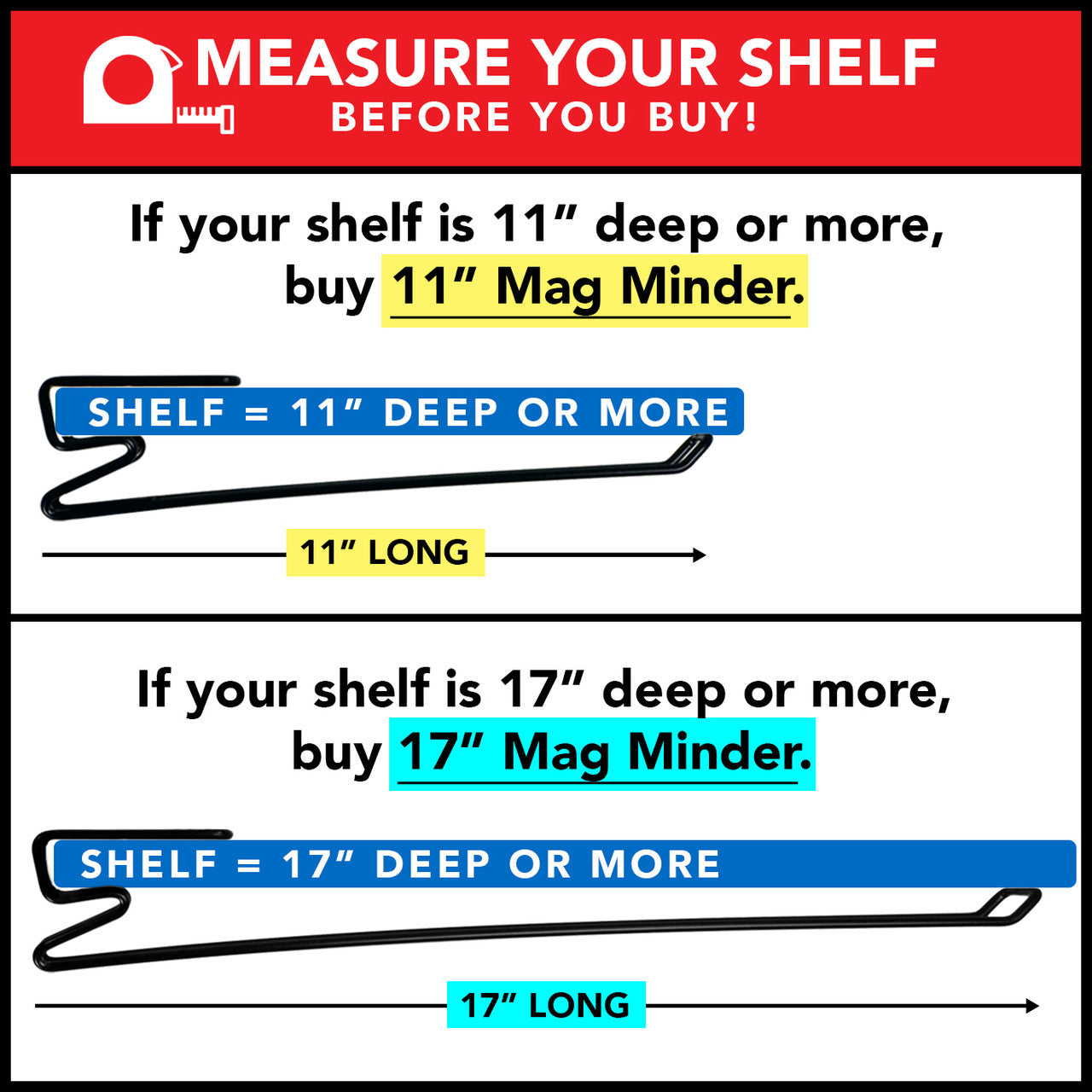 - Depth Options: 11 inches or 17 inches (measure your shelf depth)