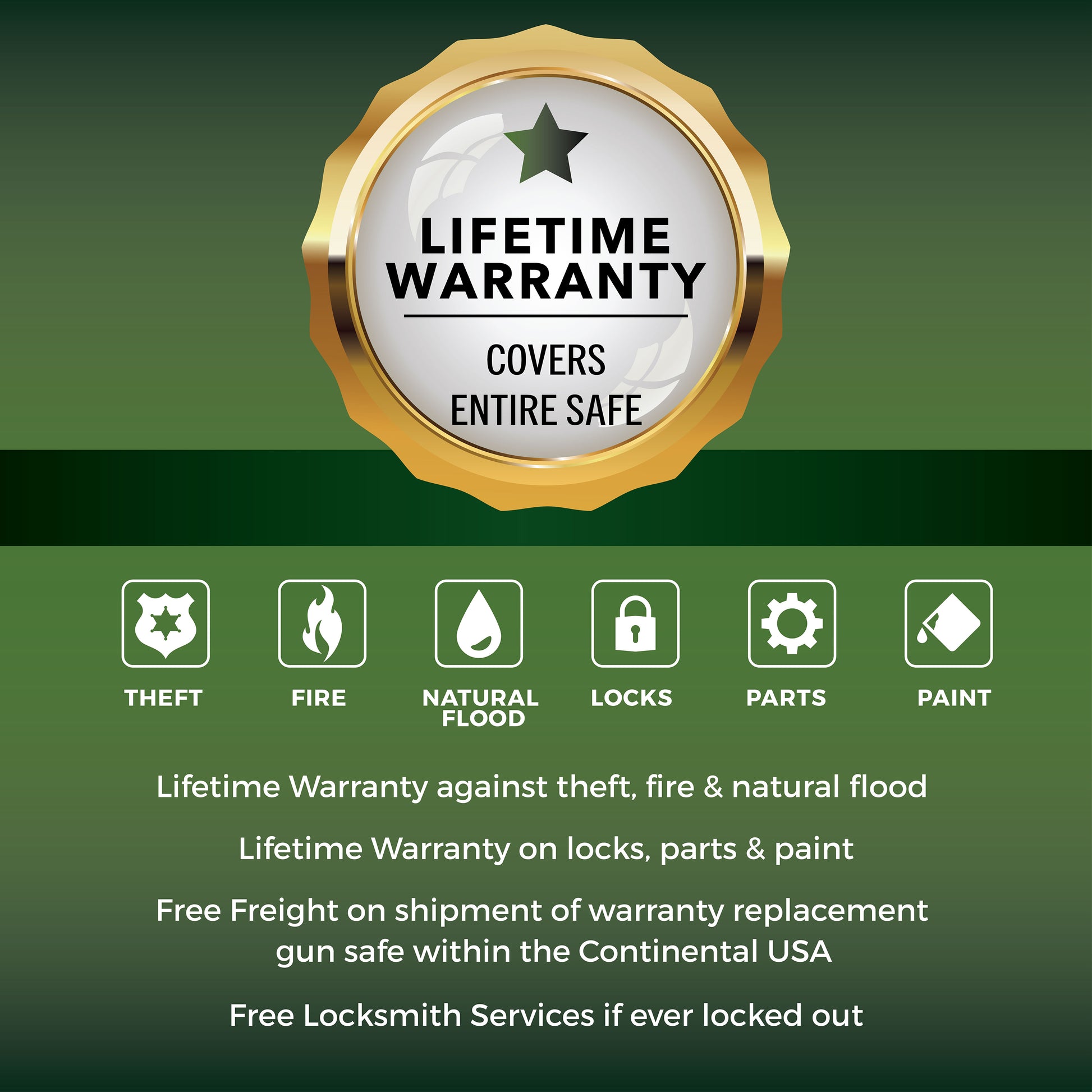 - Lifetime Coverage: Best-in-class warranty covers the entire safe against theft, fire, natural flood, locks, parts, and paint