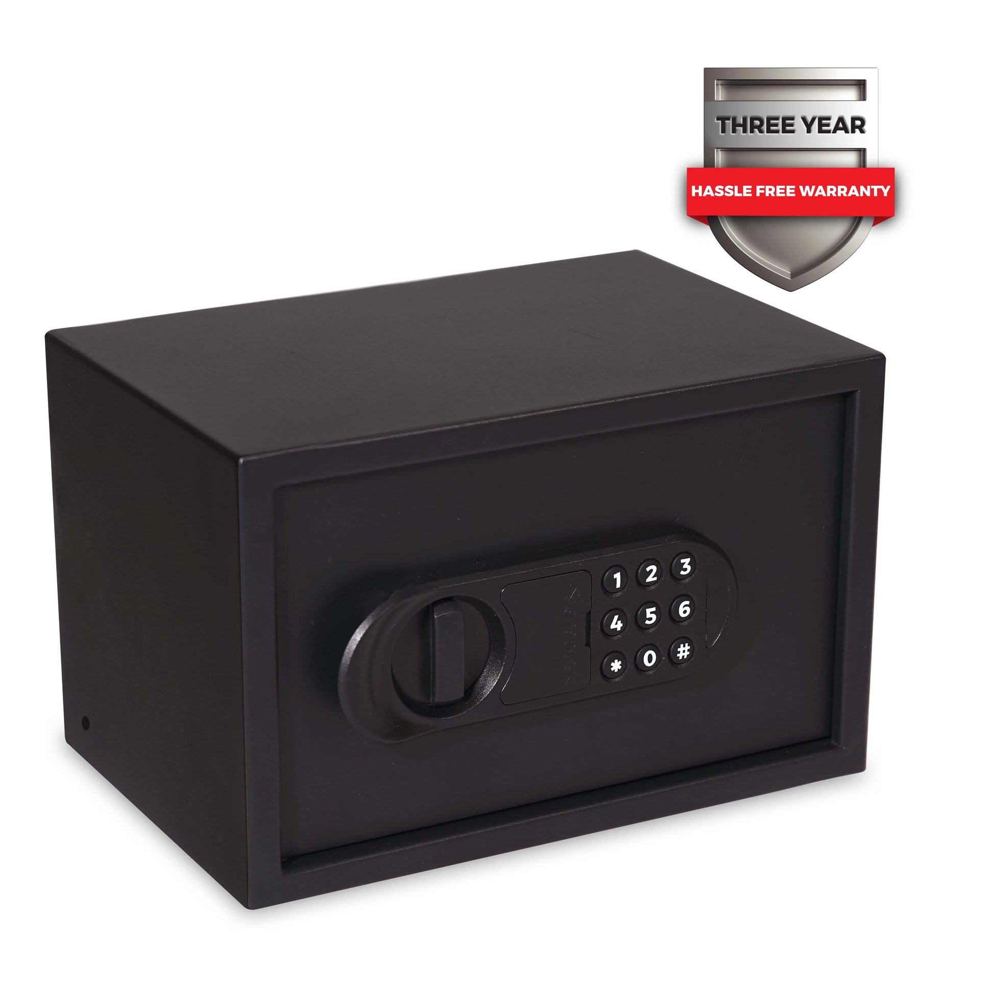 - Locking Mechanism: Fully programmable electronic lock with 2 override keys