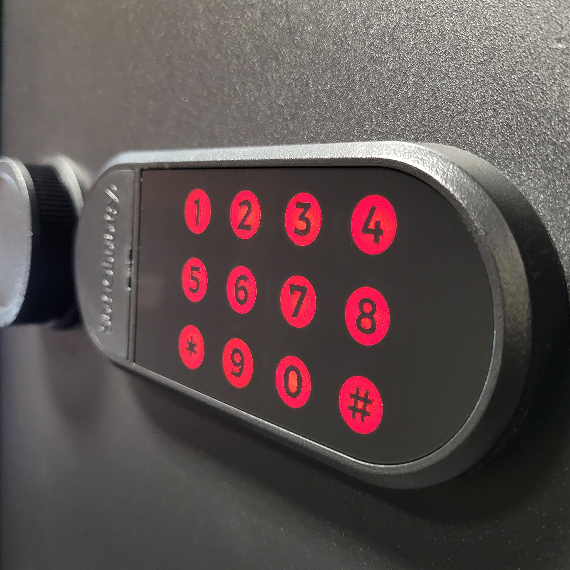 - Locking Mechanism: Fully programmable illuminated electronic lock with 2 override keys