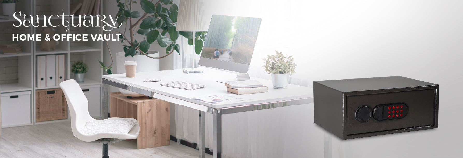 The Sanctuary SA-PVLP-01 is a 0.71 cu. ft. security vault ideal for securing documents and valuables. It features an illuminated electronic lock with a lockout mode and alarm. The brightly lit interior is foam-padded and includes four key hooks for organization. Secured by two 0.75" steel bolts, this safe is California DOJ approved and finished in a durable Dark Gray Hammertone.