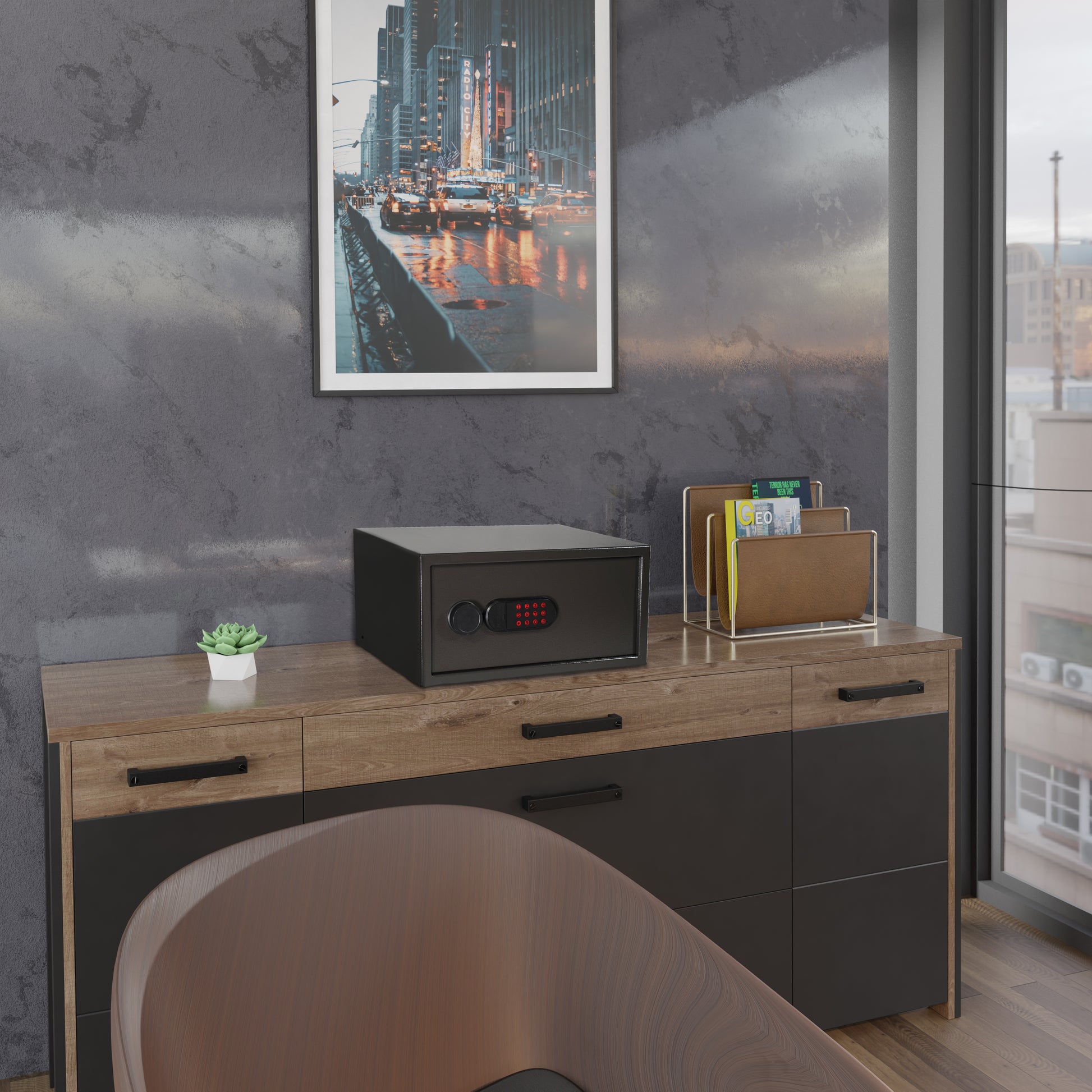 - Locking Mechanism: Fully programmable illuminated electronic lock with 2 override keys